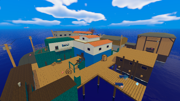 "Um dos mapas que eu mais gostava na minha infância, por volta de 2016, era o Seaside, do Counter-Strike: Source. Sempre achei ele muito interessante, e por isso decidi tentar recriá-lo no Blokoto, como uma forma de unir nostalgia com minha vontade de criar mapas."